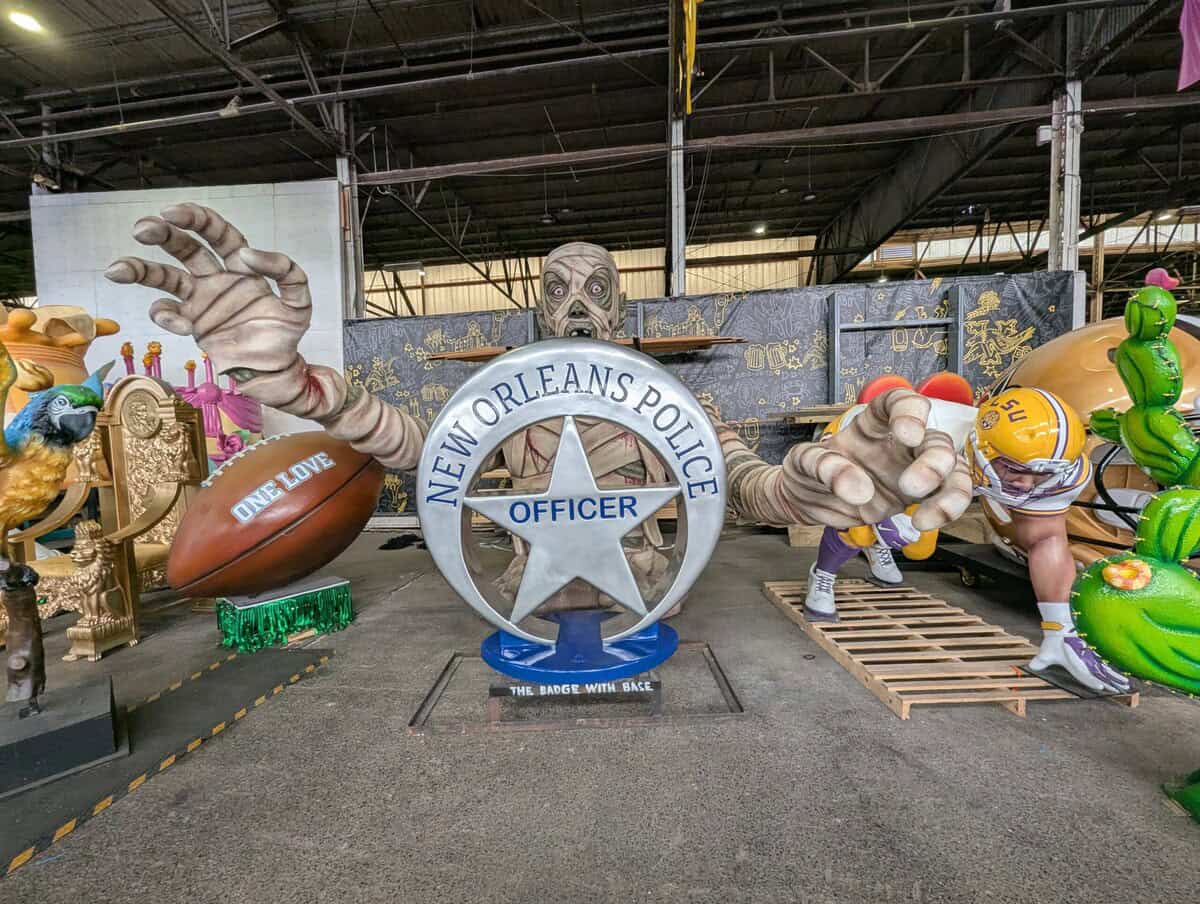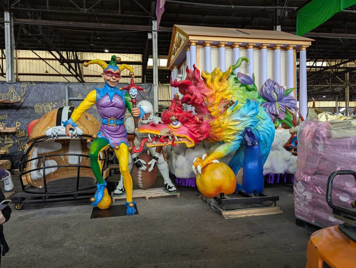 Today, a mix of sun and short showers with warm skies. This morning we had a city tour stopping off at a cemetery with lunch and shopping in the French Quarter. After lunch we toured Mardi Gras World, the place where they make the floats for our parade. Tonight we have reserved seating at the parade and pleasant temperatures.