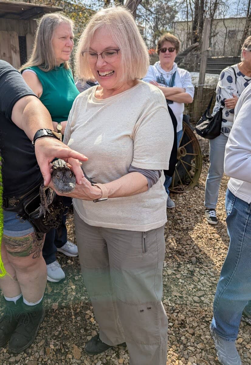 Today we started the trip home but first stopping at a retired sugar plantation. Oak Alley Plantation is the queen of plantations on the Mississippi River. 30 majestic oaks create an alley leading to the front door of the big house. We had a house tour and visited the other exhibits. After lunch at the Kliebert alligator exhibit we had a tour allowing us to hold snakes, alligators and a chance to feed the turtles and emus. Tonight we’ll stay in the Jackson area.